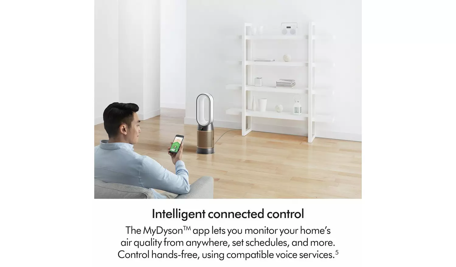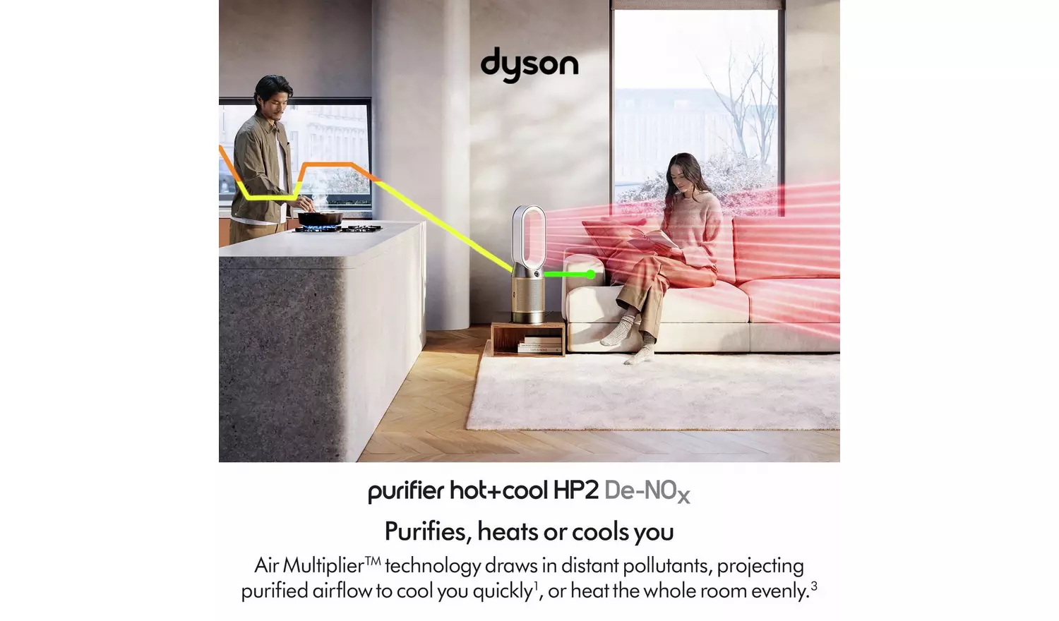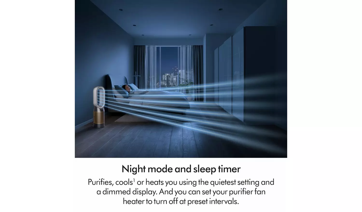 Cools you in summer. Heats you in winter. Purifies all year round. Advanced purification automatically captures 50% more NO2. Cools you quickly and quietly. Air MultiplierTM technology projects over 290 litres of air per second delivering smooth, yet powerful airflow to cool you during warmer weather. Heats you and your whole room evenly. Ceramic plates combine with Air Multiplier projection to keep you warm during cold weather. And once your target temperature is reached, heating automatically stops.