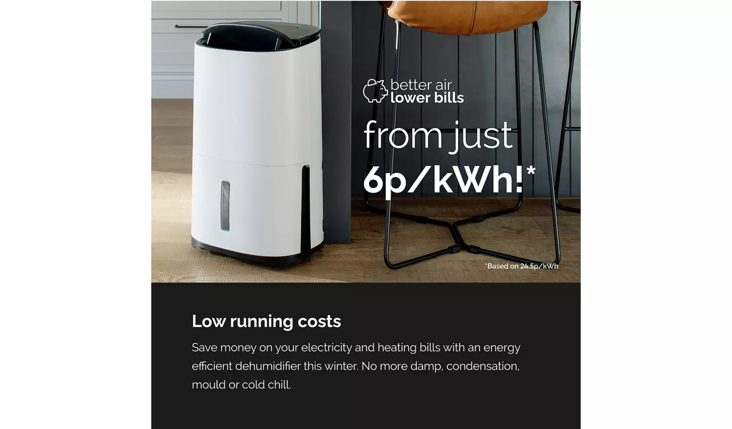Operating at just 38 dB, this is one of the quietest dehumidifiers in its class, making it perfect for night-time use. Combined with low energy consumption, it offers cost-effective, continuous performance.