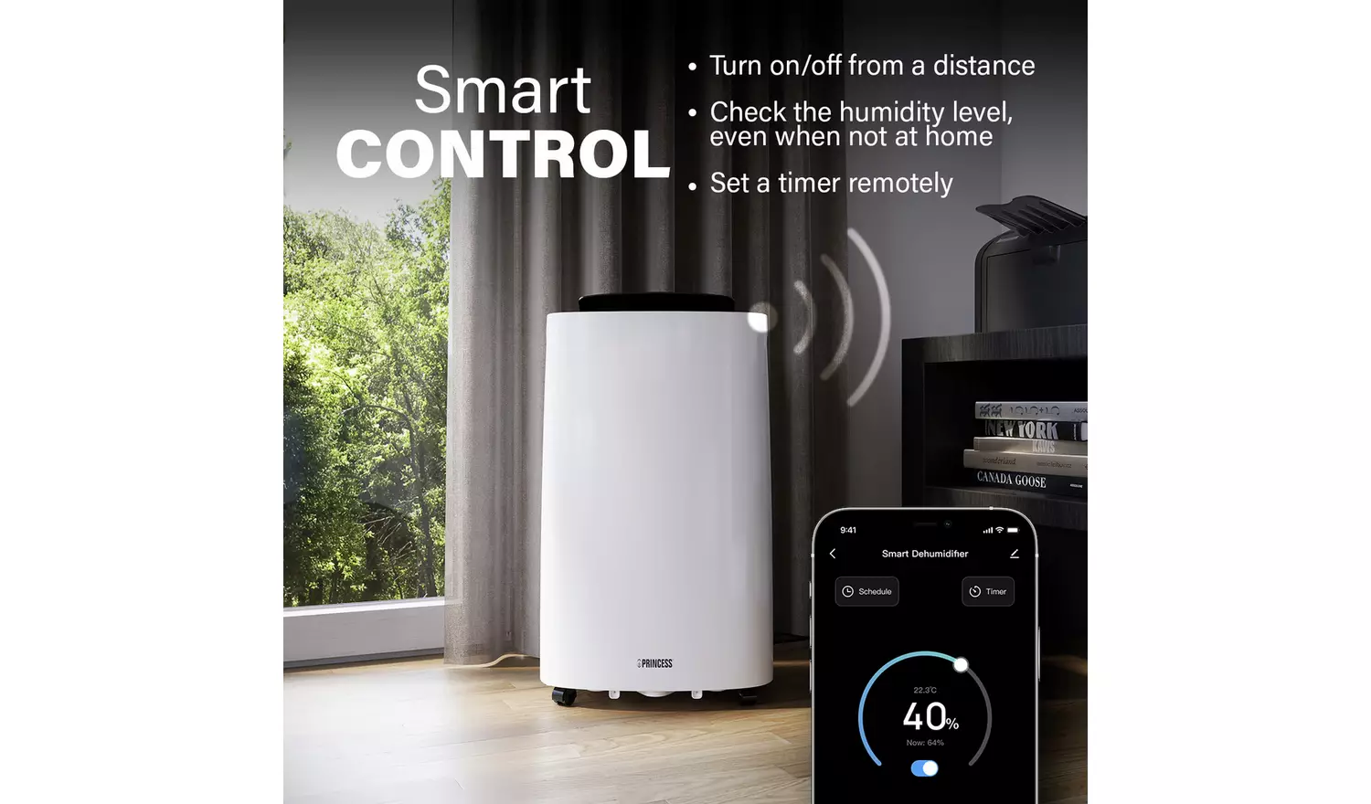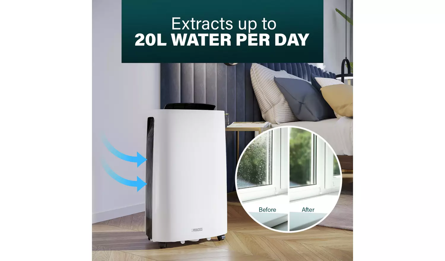 Eliminate damp and improve your air quality with the Princess Smart 20 Litre Dehumidifier.
